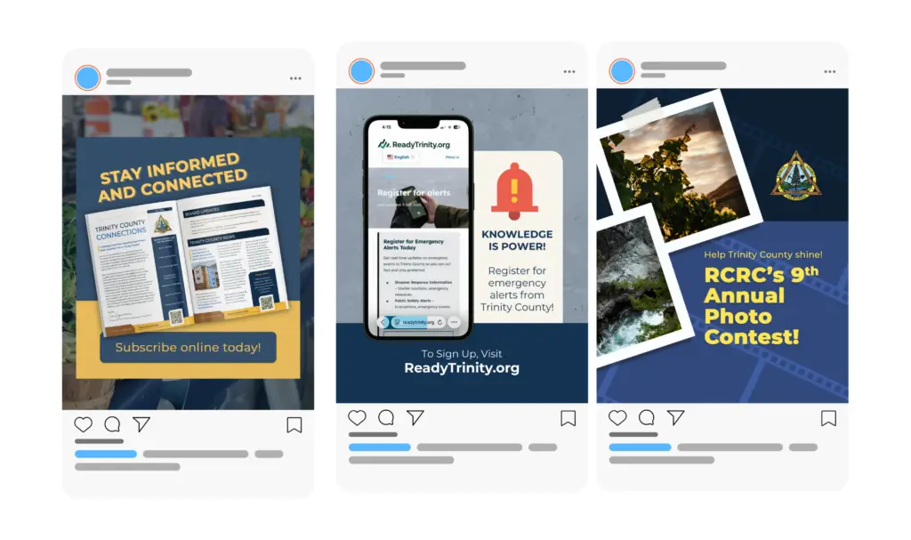 Below is a selection of the work we designed for Caporusso Communications as part of their collaborations with Mono County and Trinity County.