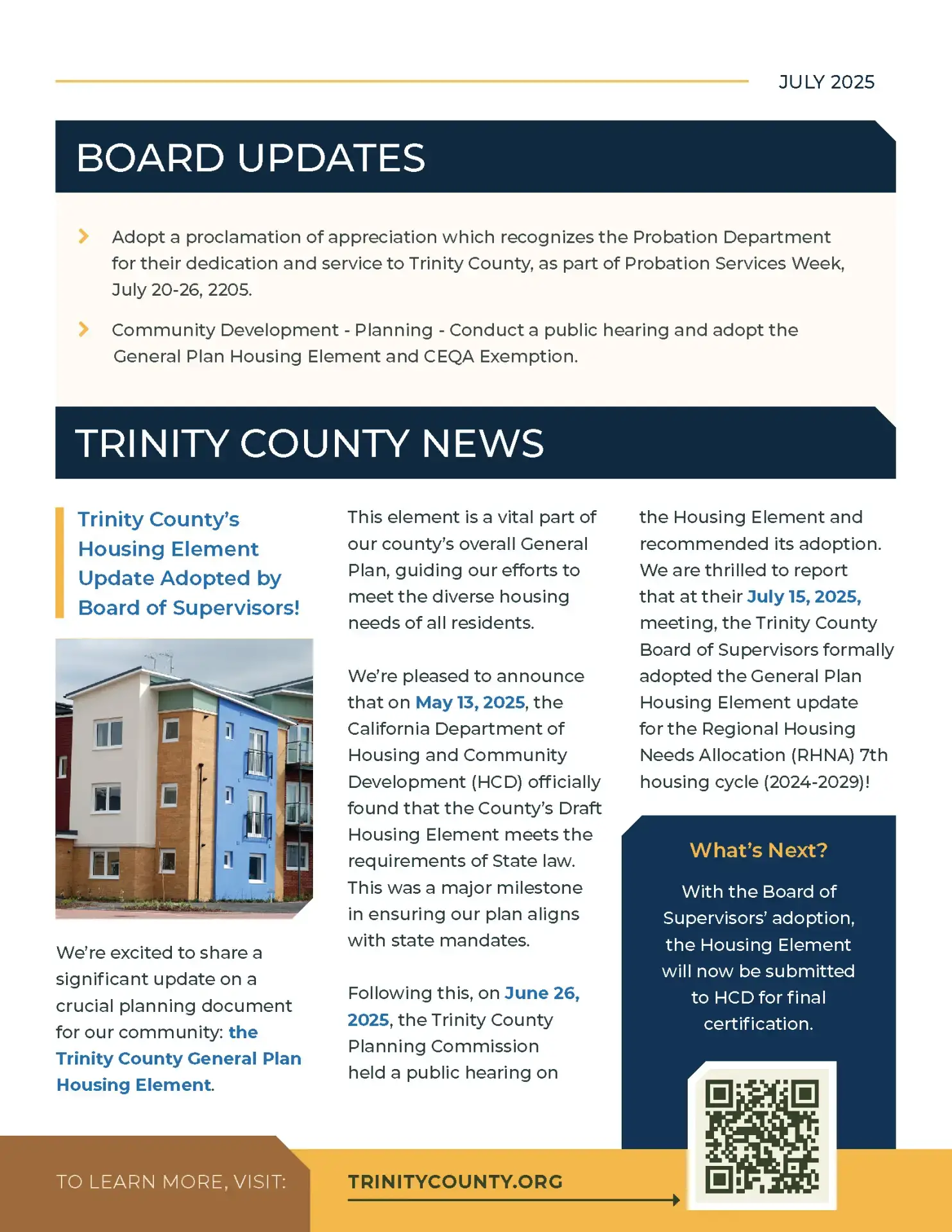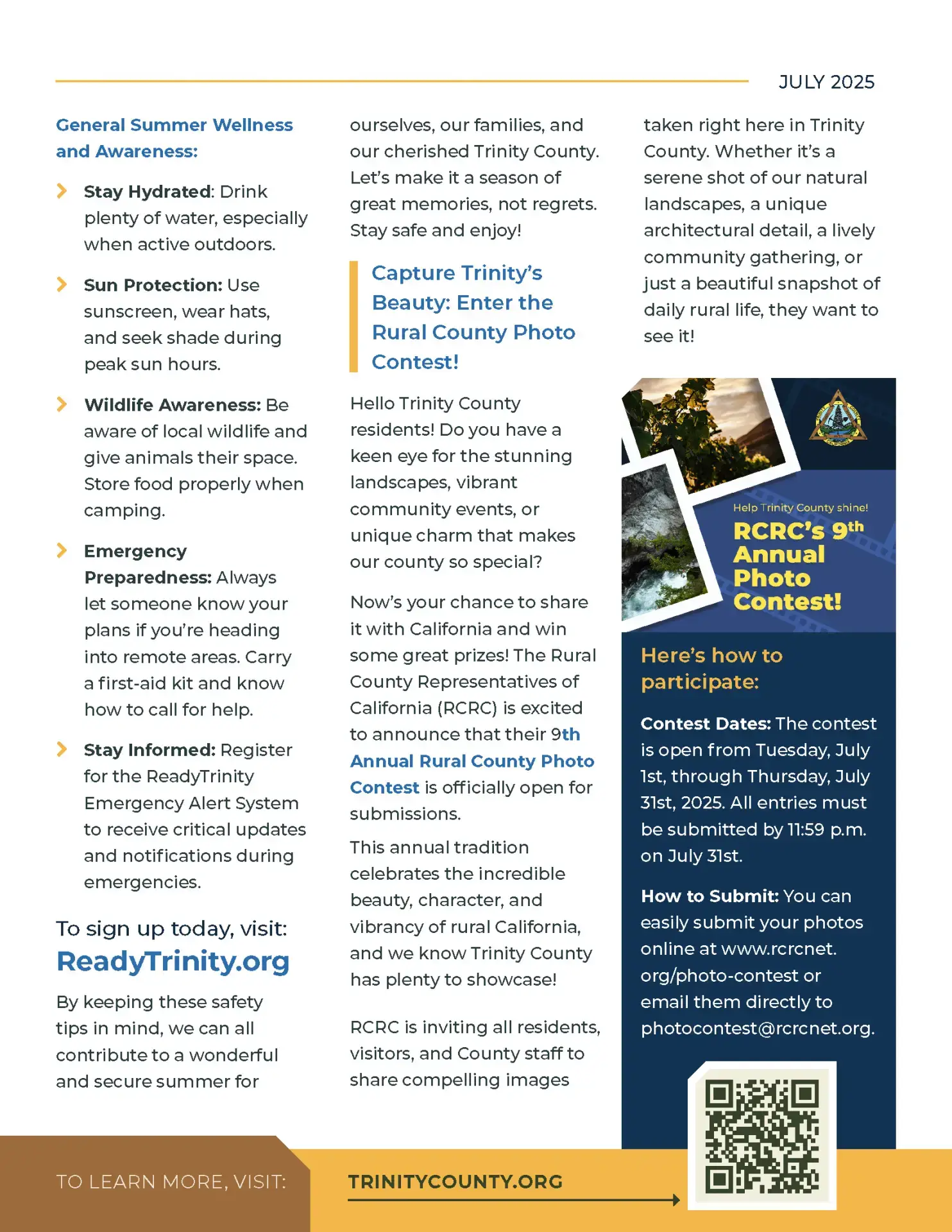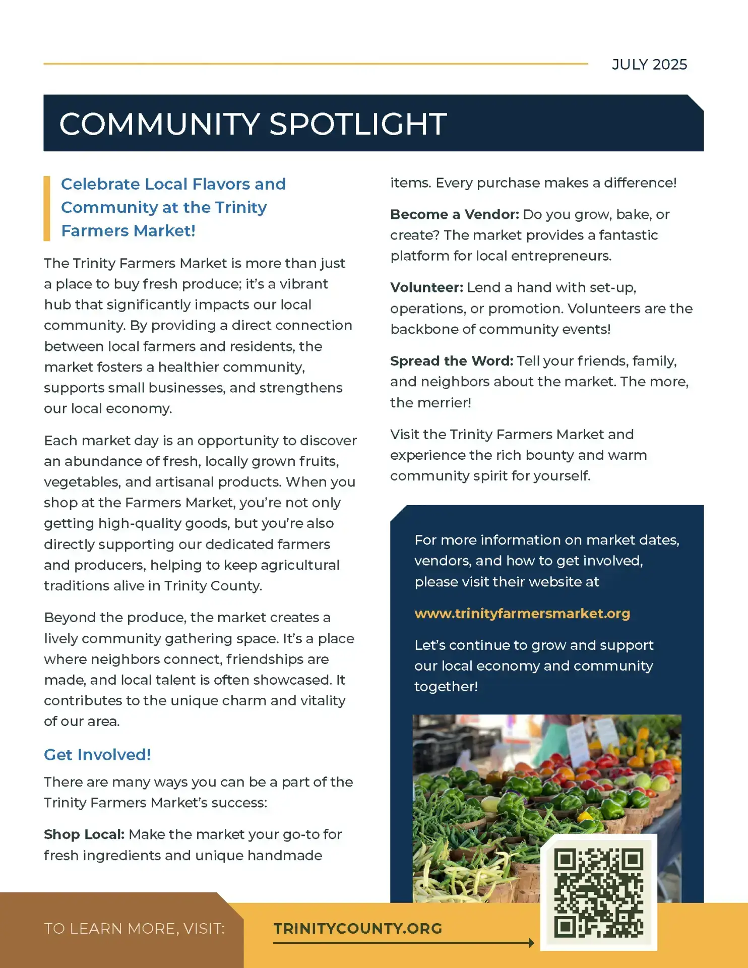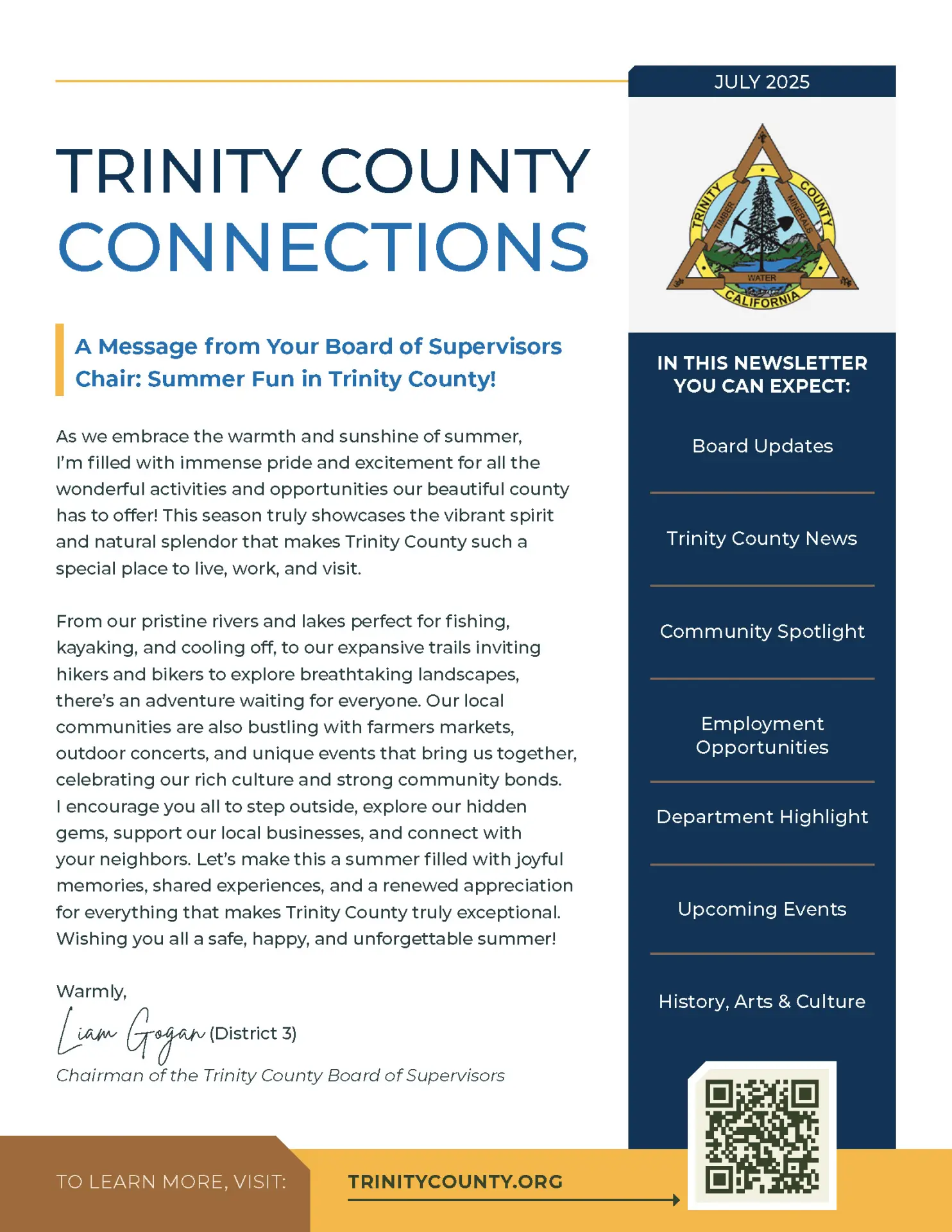 A modern, easy-to-read newsletter that supports Caporusso Communication’s mission of delivering clear, relevant, and accessible updates to Trinity County residents.